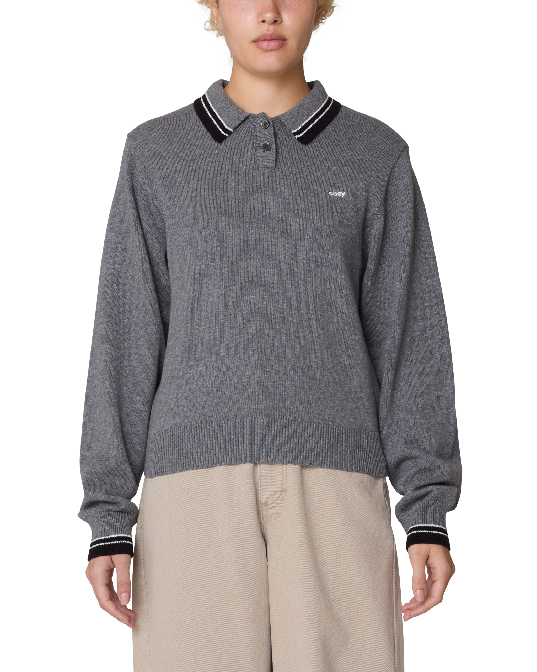 - STRIPE RIB POLO COLLAR WITH BUTTON PLACKET